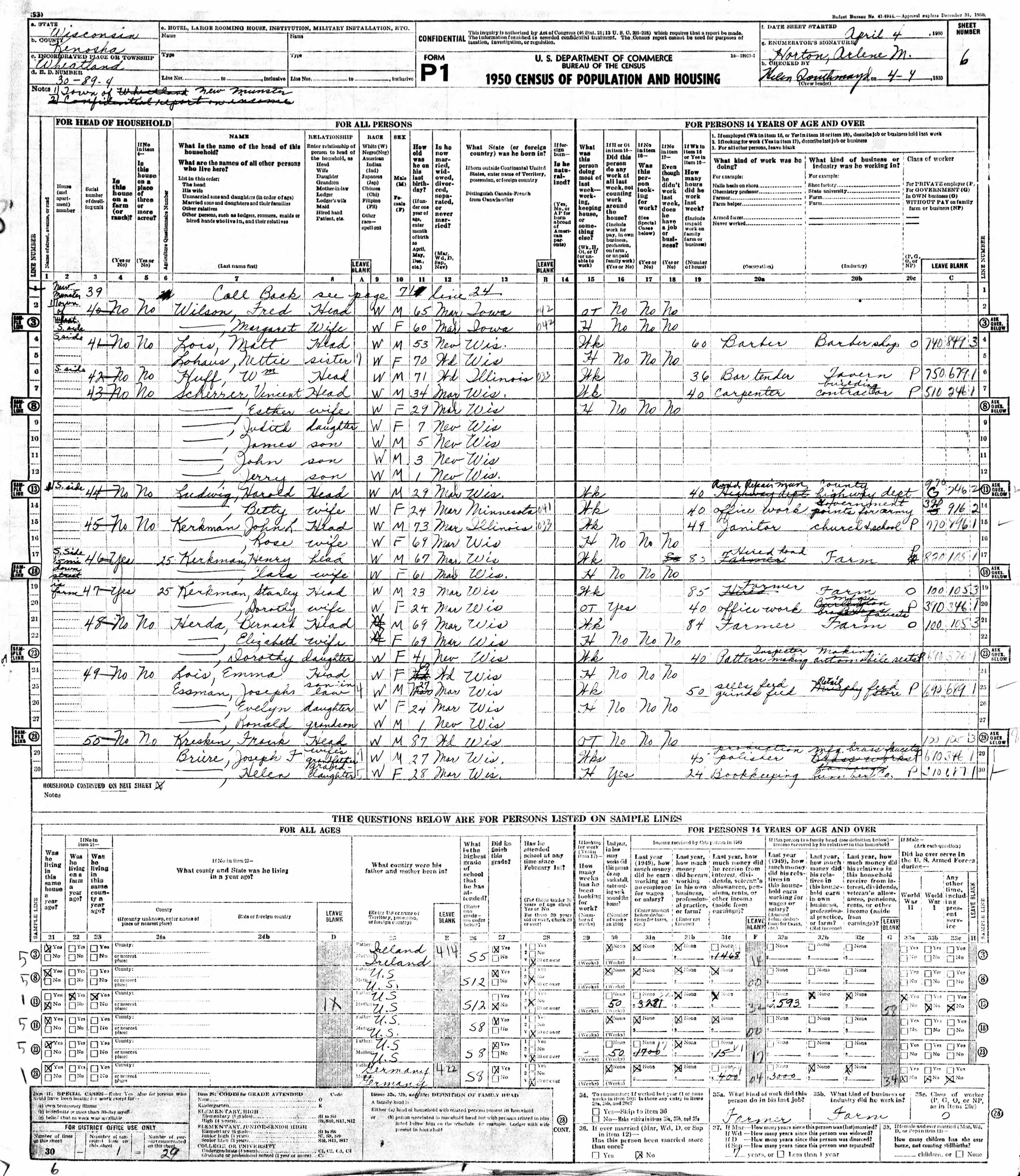 Year: 1950; Census Place: Wheatland, Kenosha, Wisconsin; Roll: 3355; Page: 6; Enumeration District: 30-89