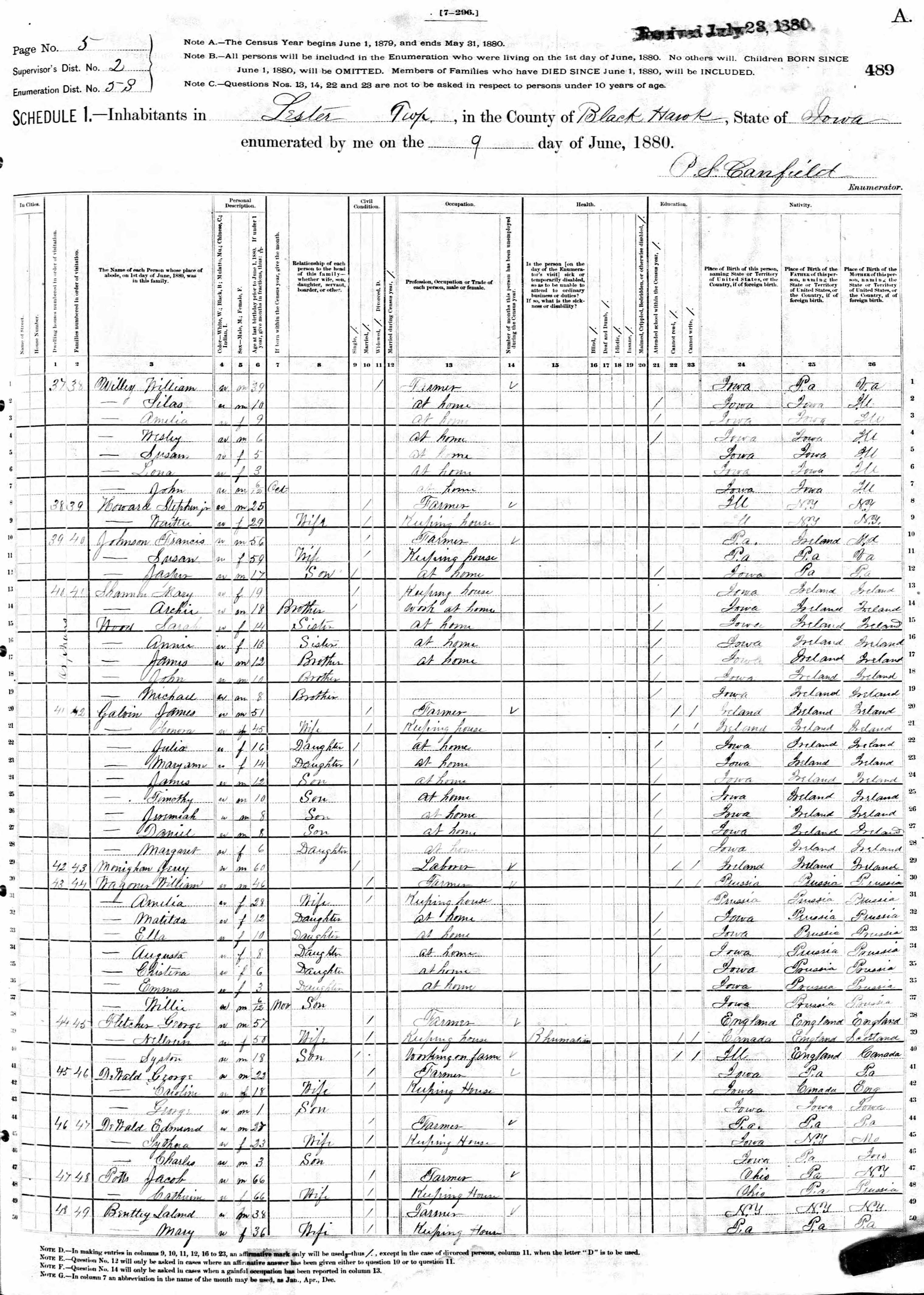 Year: 1880; Census Place: Lester, Black Hawk, Iowa; Roll: 327; Page: 489A; Enumeration District: 053