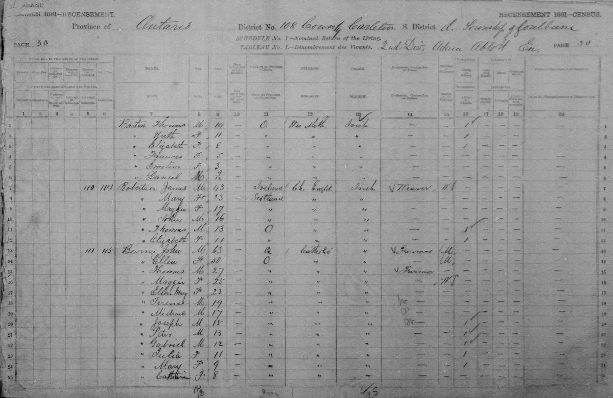 Year: 1881; Census Place: Goulbourn, Carleton, Ontario, Canada; Microfilm: C-13231; Page: 30