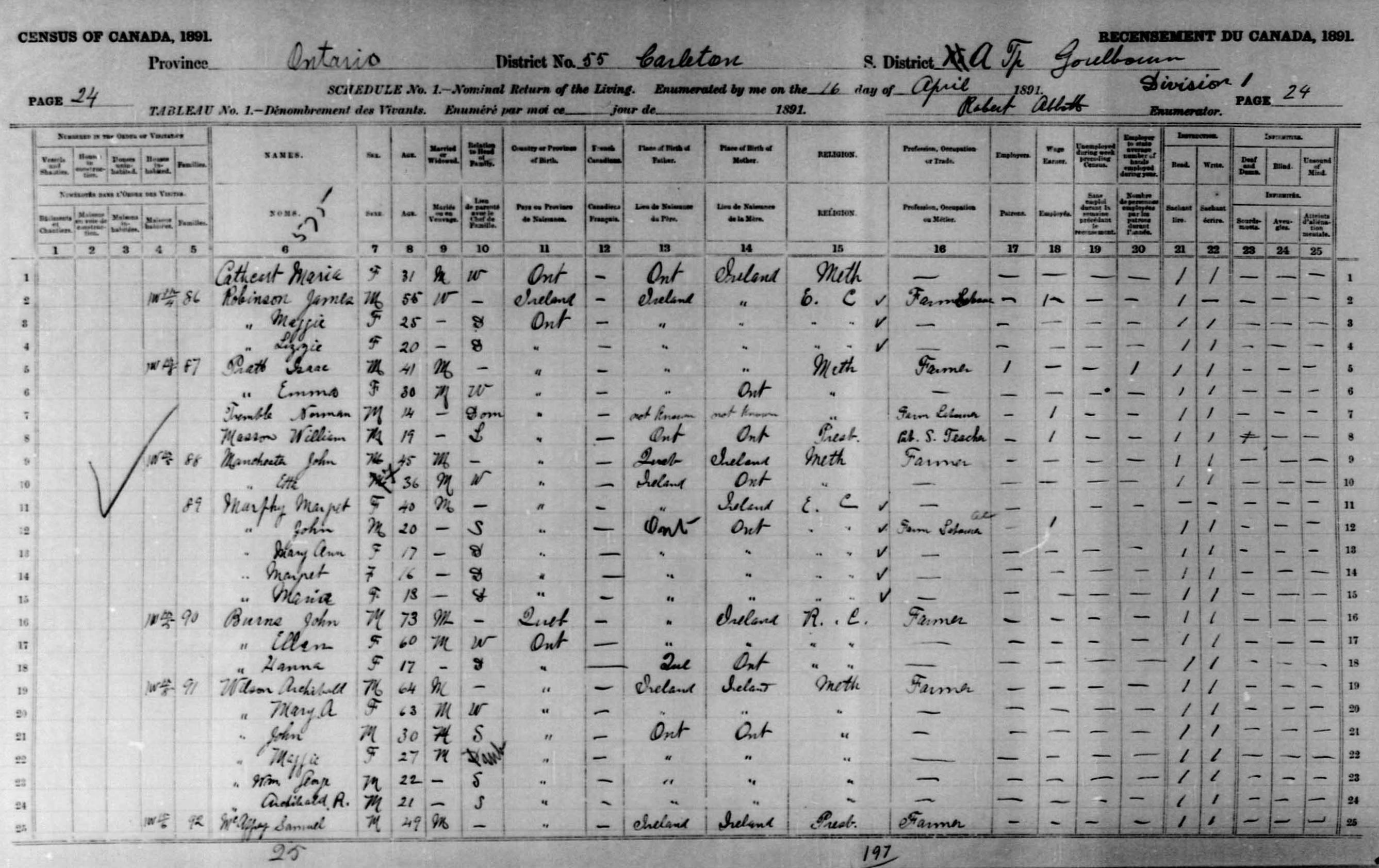 Year: 1891; Census Place: Goulbourn, Carleton, Ontario, Canada; Microfilm: T-6329; Page: 24