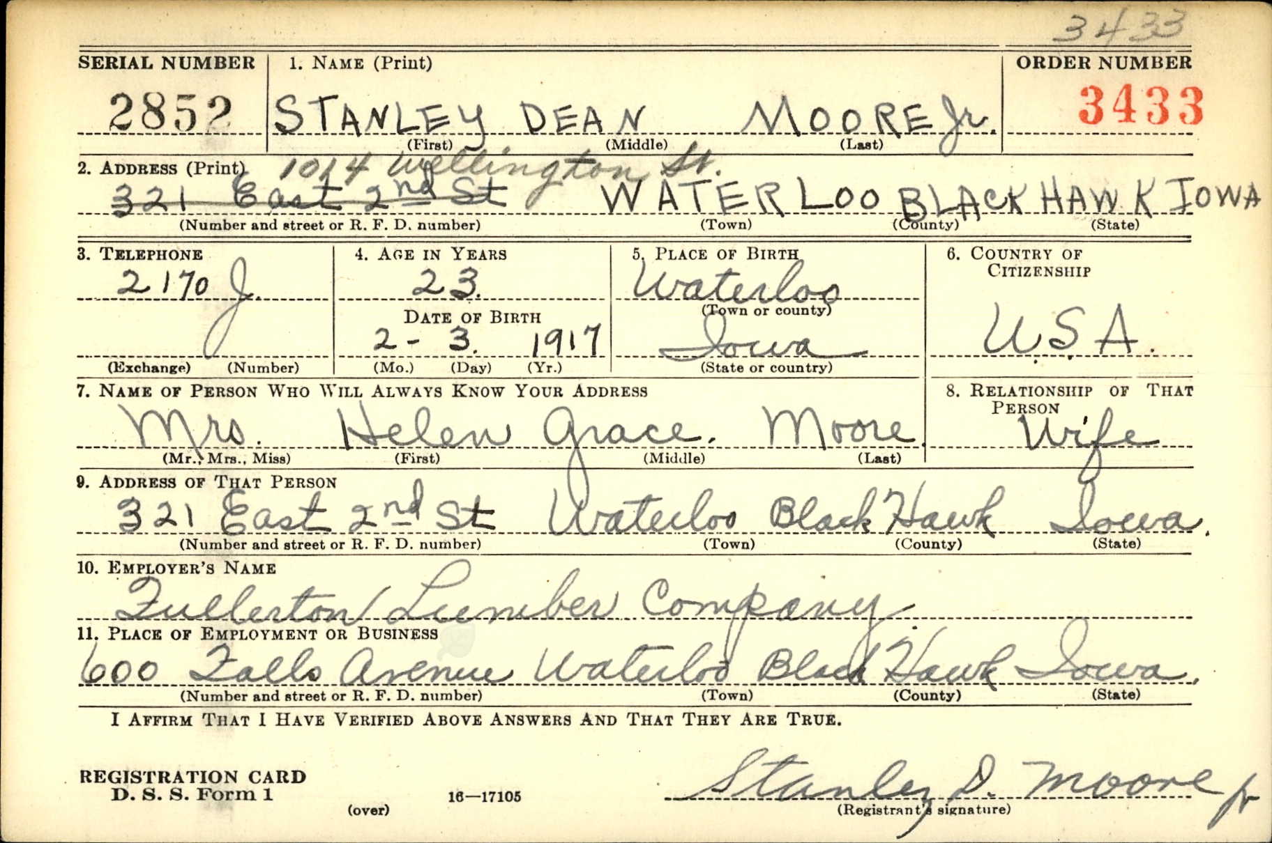 World War II Draft Registration Cards, 1940-1945; Registration Location: Waterloo, Black Hawk, Iowa; Selective Service System, 147; Box: 348