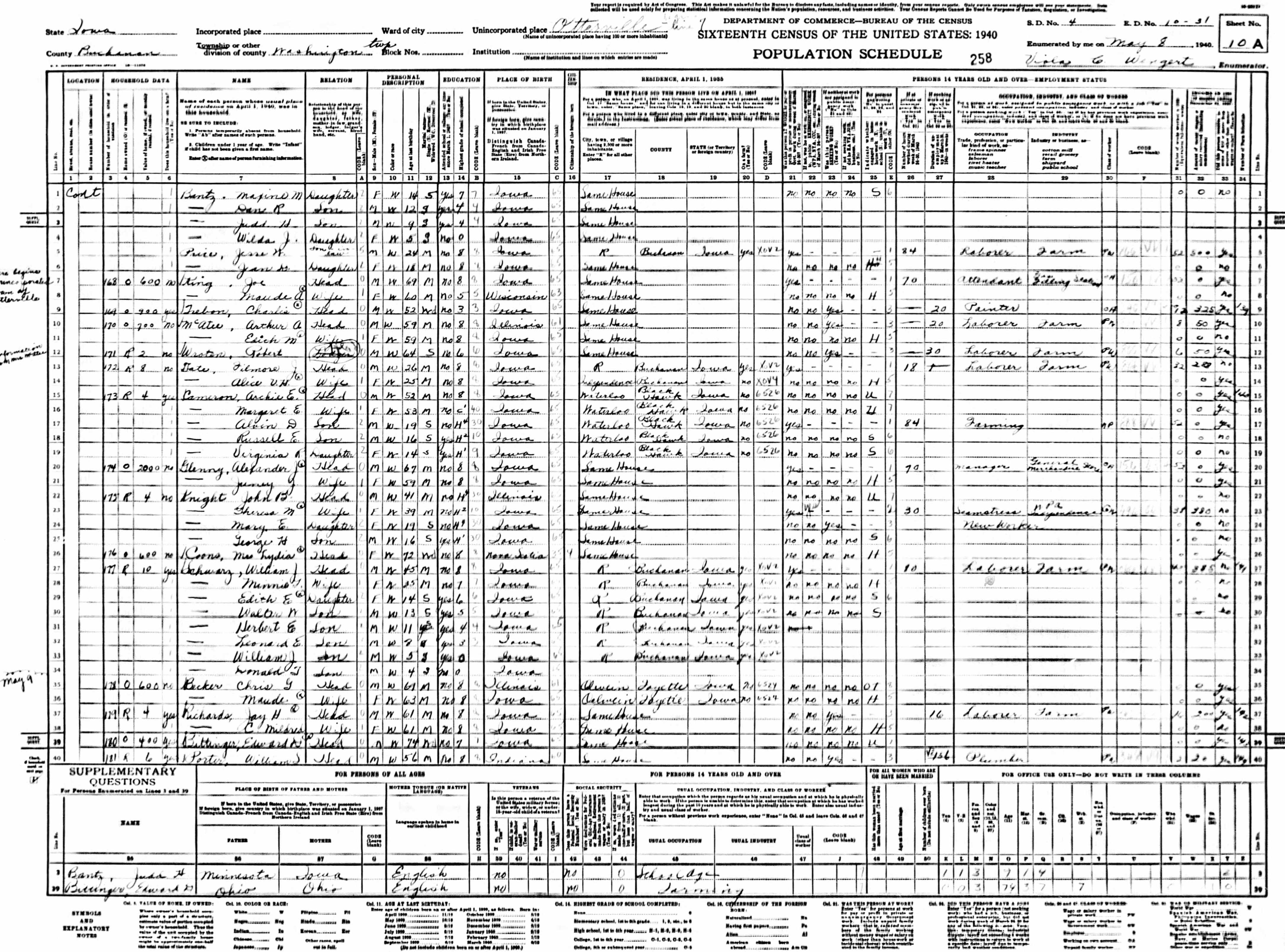 Year: 1940; Census Place: Washington, Buchanan, Iowa; Roll: m-t0627-01142; Page: 10A; Enumeration District: 10-31