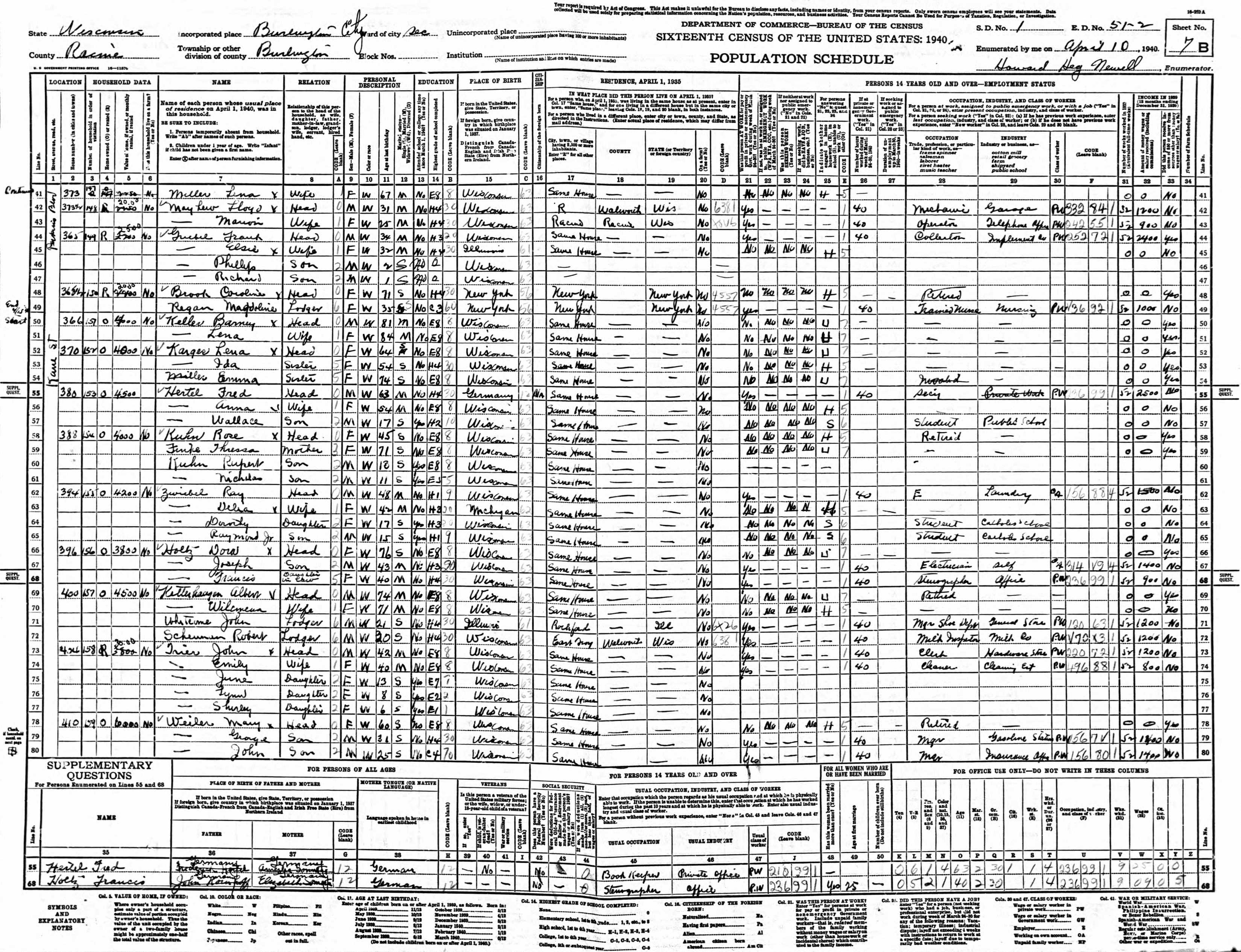 Year: 1940; Census Place: Burlington, Racine, Wisconsin; Roll: T627_4515; Page: 7B; Enumeration District: 51-2