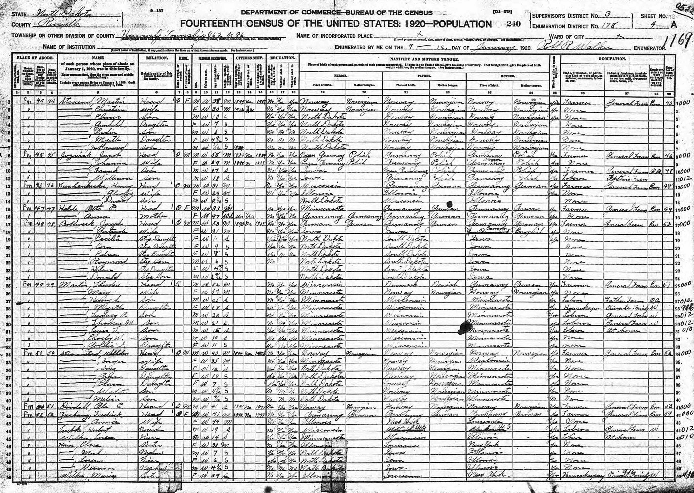 Year: 1920; Census Place: Hamerly, Renville, North Dakota; Roll: T625_1338; Page: 4A; Enumeration District: 178; Image: 1058