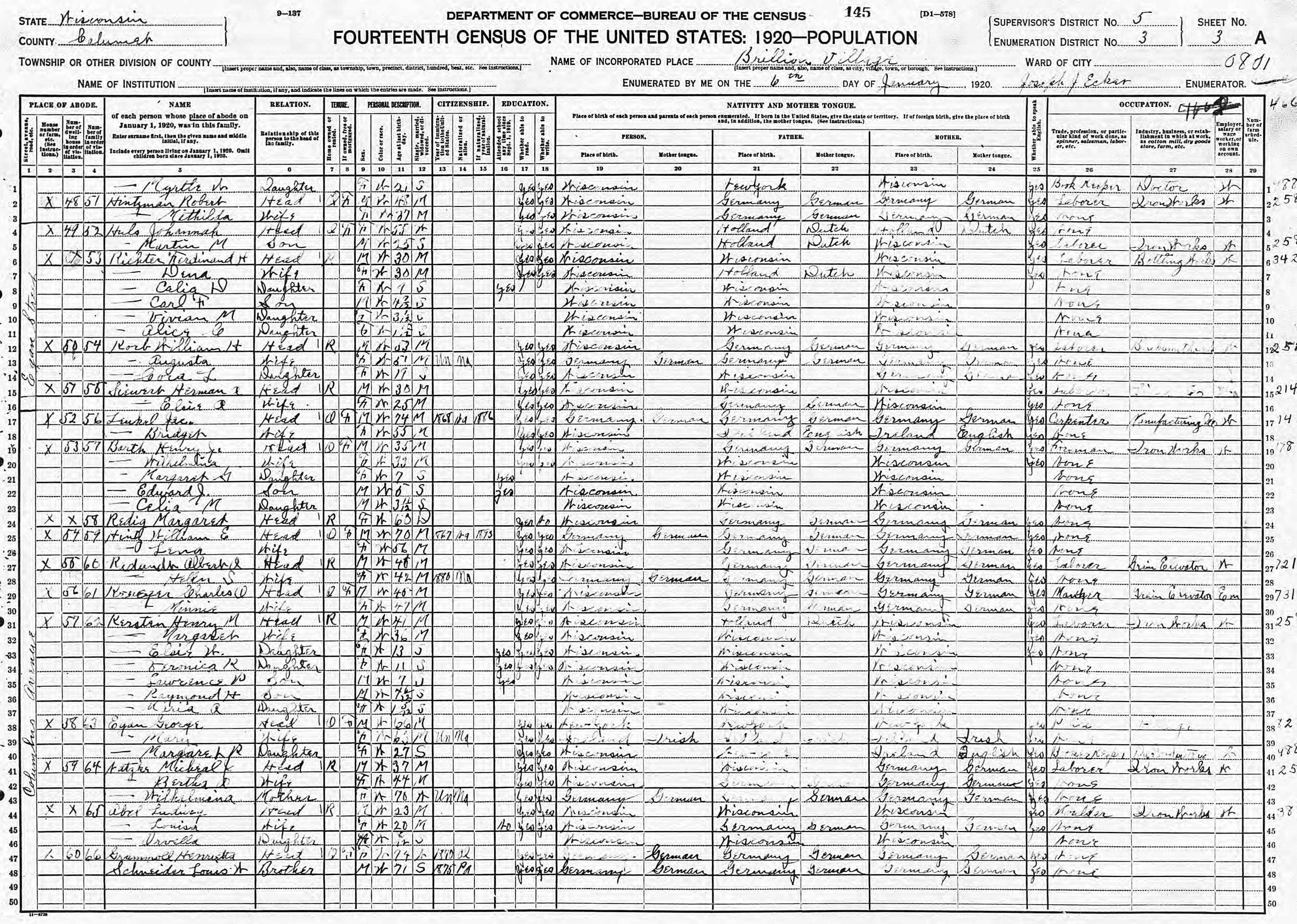Year: 1920; Census Place: Brillion, Calumet, Wisconsin; Roll: T625_1979; Page: 3A; Enumeration District: 3