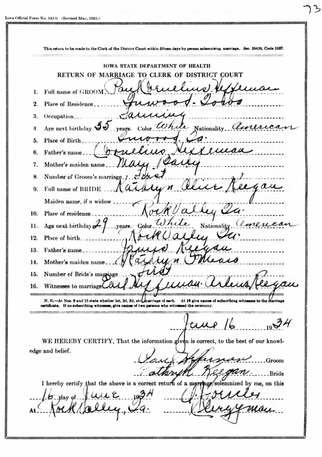 1934 Marriage Record