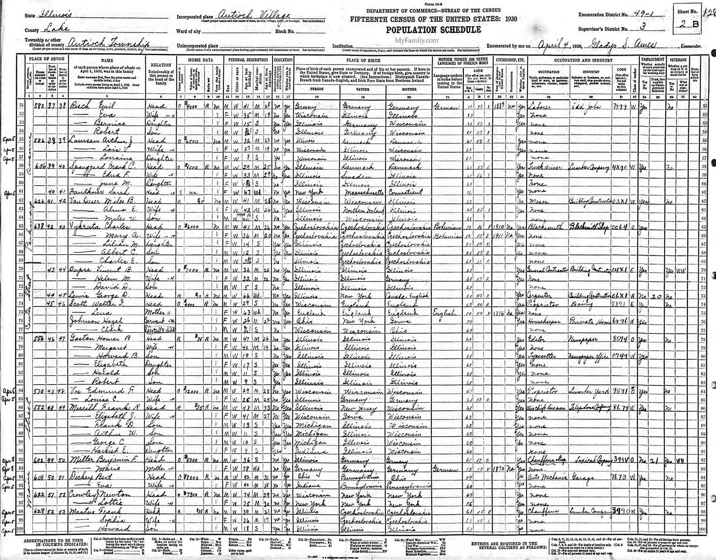 Year: 1930; Census Place: Antioch, Lake, Illinois; Roll: 528; Page: 2B; Enumeration District: 1; Image: 5.0.